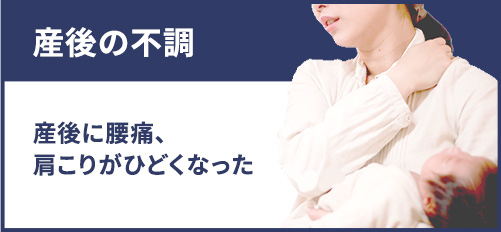 体のケアをしっかり行い、笑顔で育児が出来る体作りをお手伝いします。